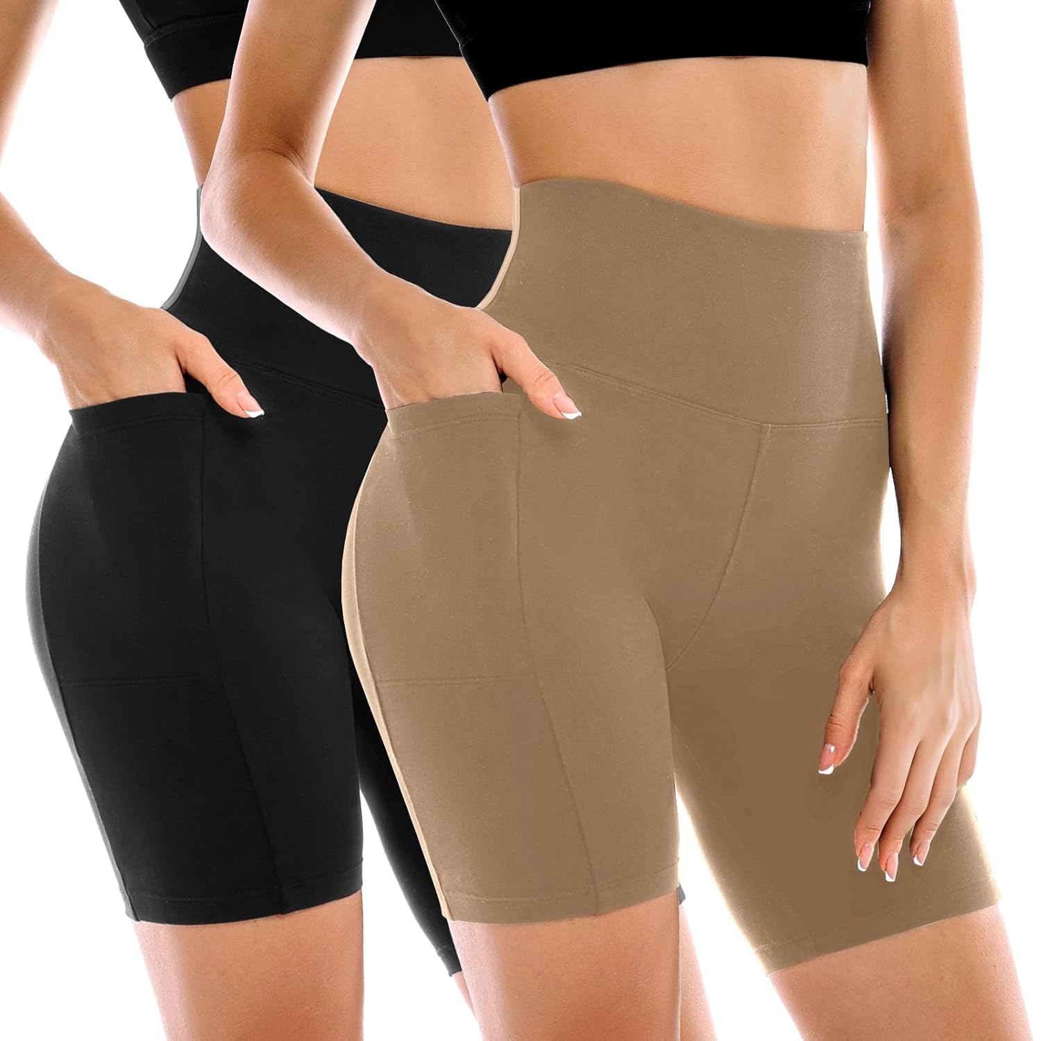 2 Pack Womens Biker Shorts with Pockets, High Waisted Yoga Shorts for Women Running Gym and Workout