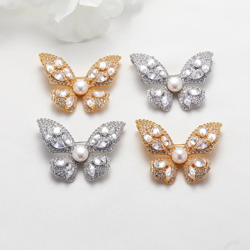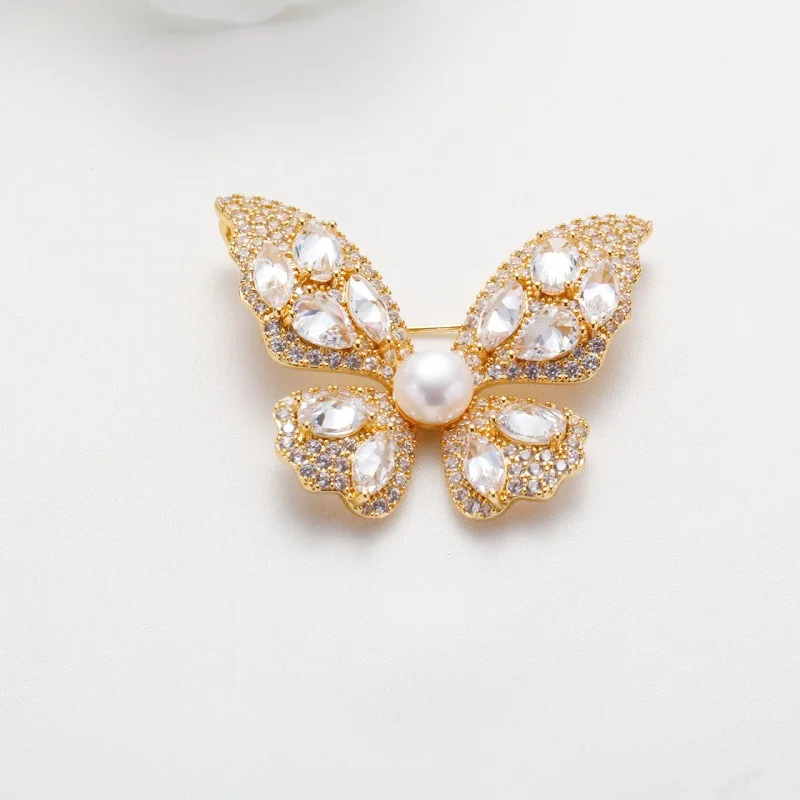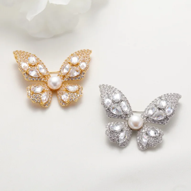 2024 New Elegant Zhuji Shanxia Lake Butterfly Freshwater Pearl Brooch Customizable Diamond Set Personalized Suit Accessories