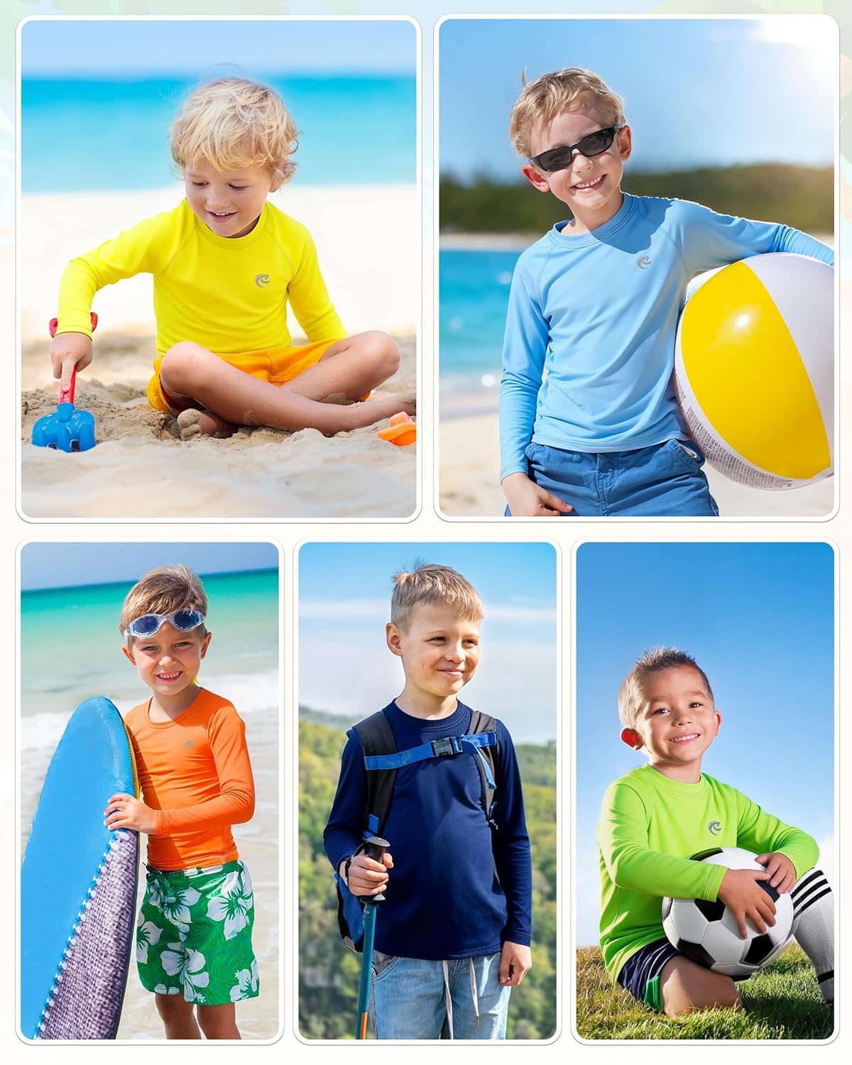 - Tagless & Chafe-Free: The soft, tagless neckline and flatlock seam prevent skin irritation, making it perfect for kids with sensitive skin; The crew neck and long sleeves offer full coverage, minimizing irritation from sand or surfboards