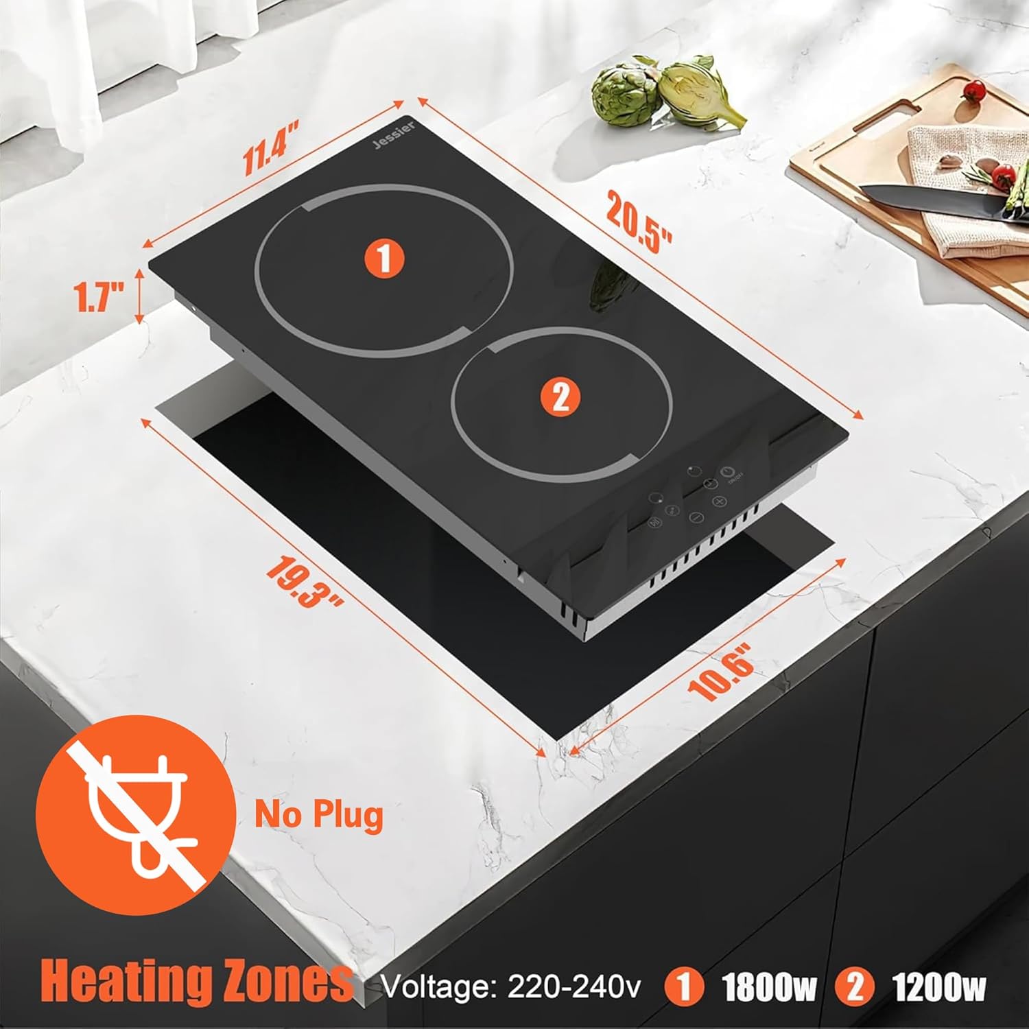 - 【3000W High Power & 9 Heating Levels】The total power of this 2 burners electric cooktop is…