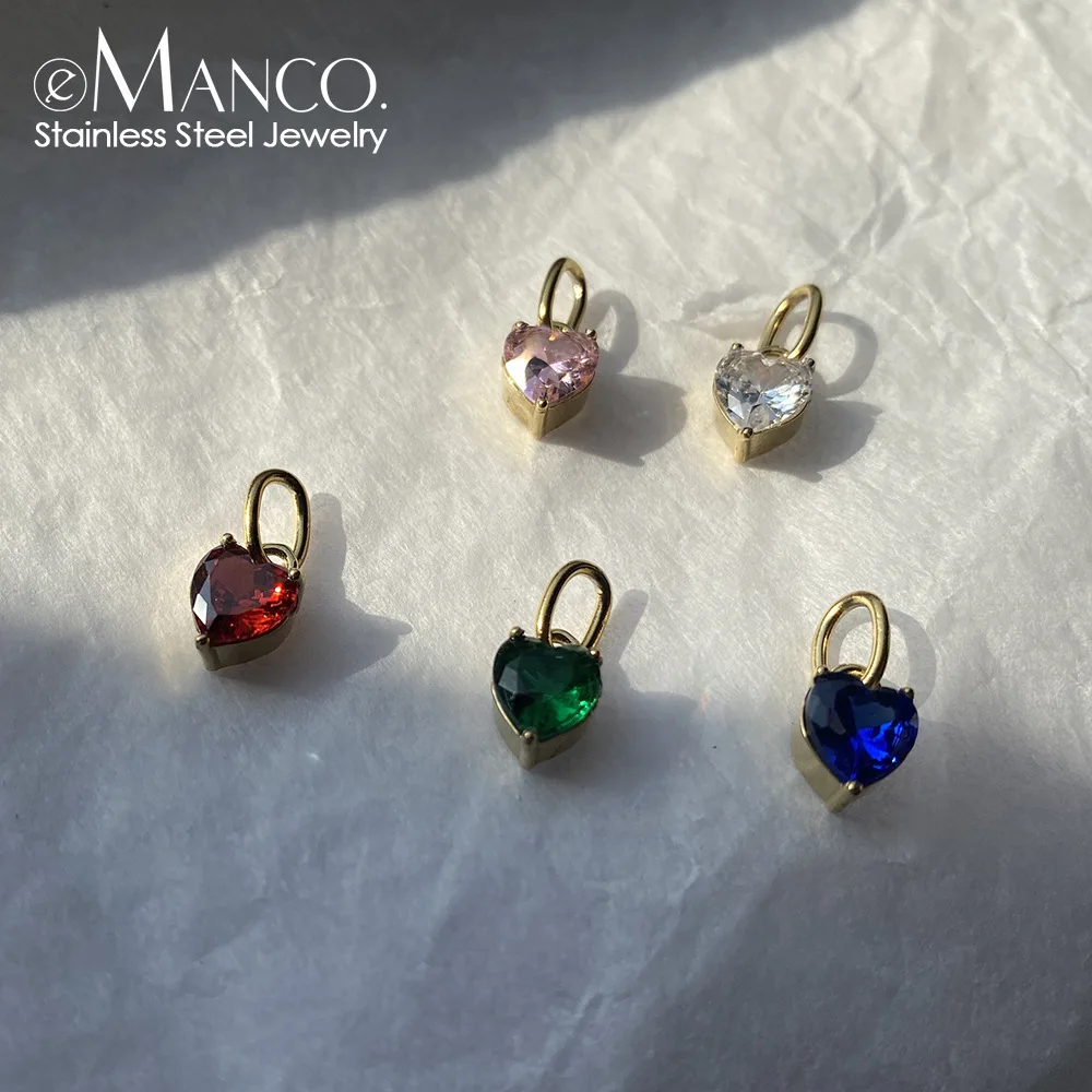 EManco Stainless Steel Heart-Shaped Zircon Pendant Mosaic Treatment 6mm Size Trendy DIY Jewelry Accessories Bracelet Pendants