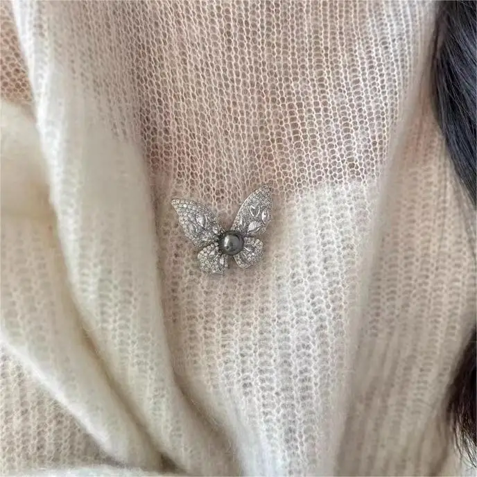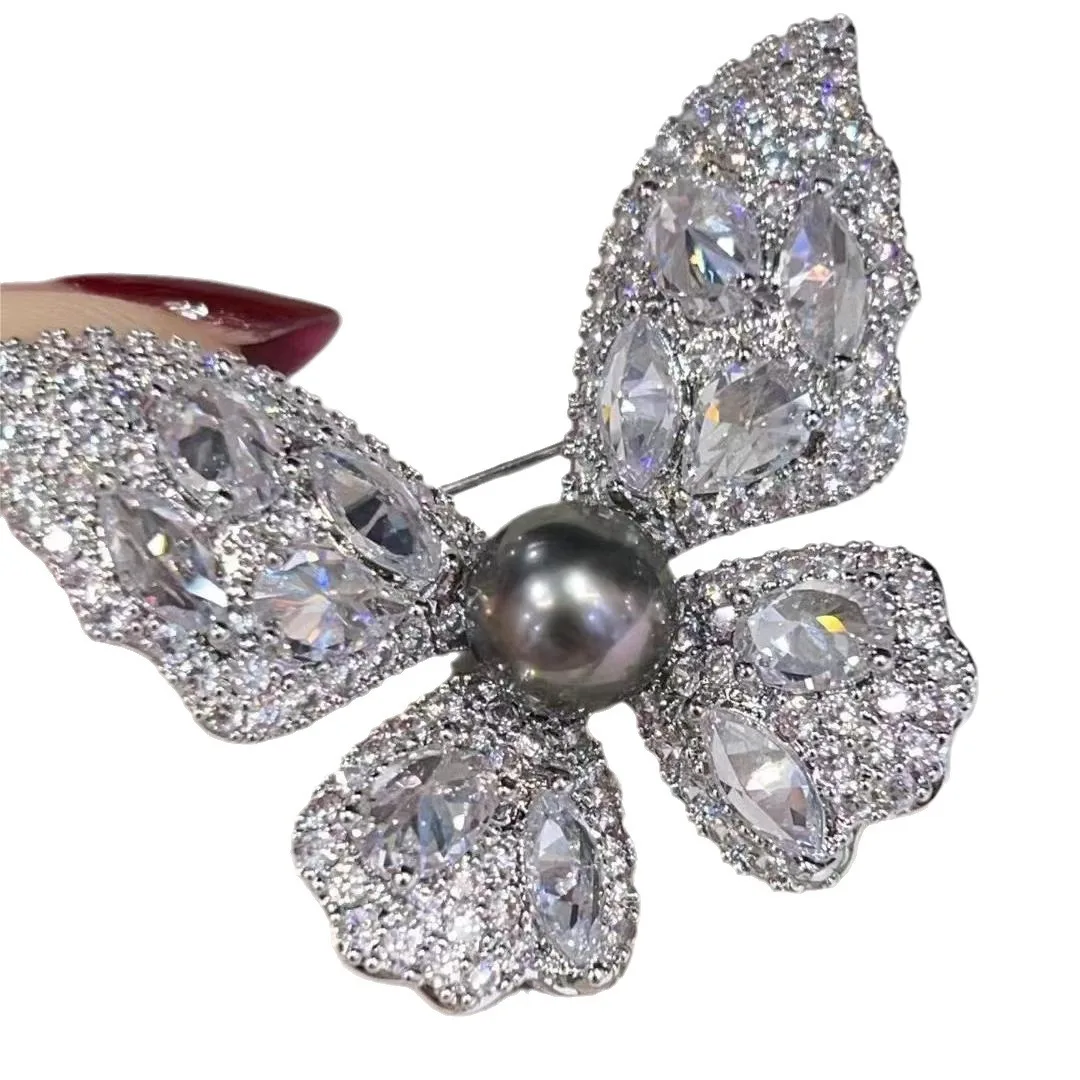 Hao Shi Wenchi Summer Collection New Inlaid Butterfly Brooch Pins Tahiti Seawater Pearl Chest Flower Black Jewelry Decoration