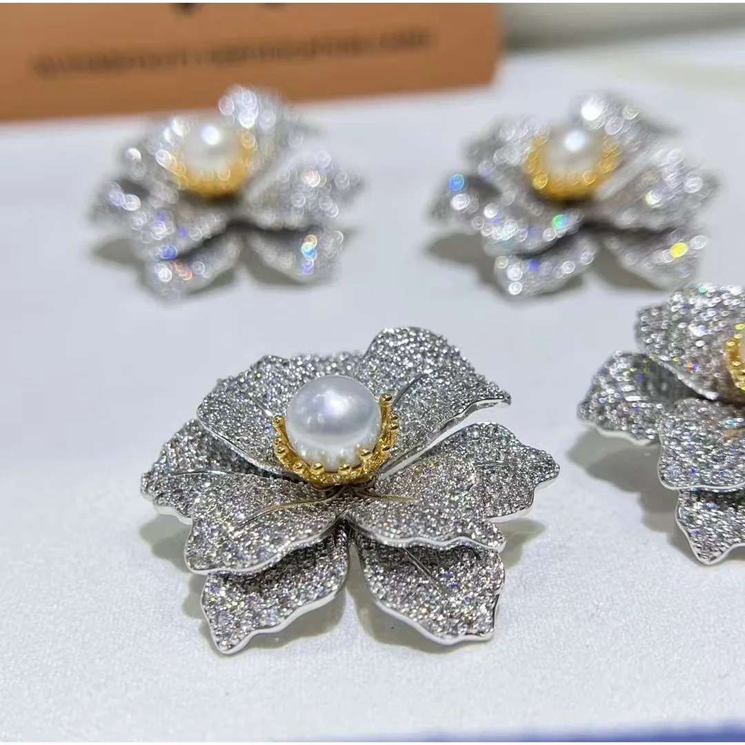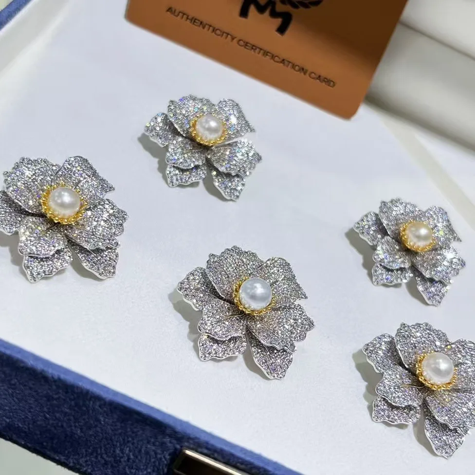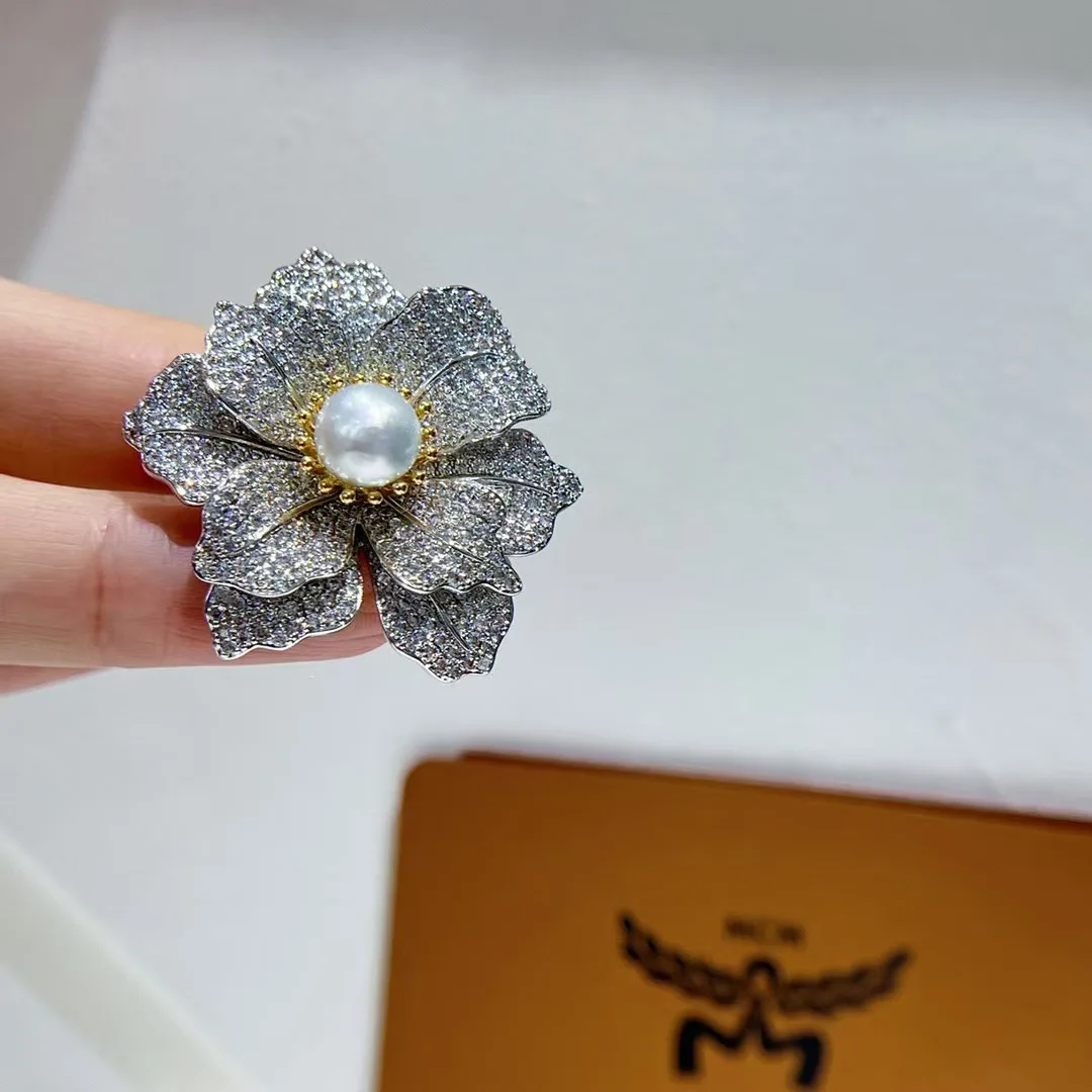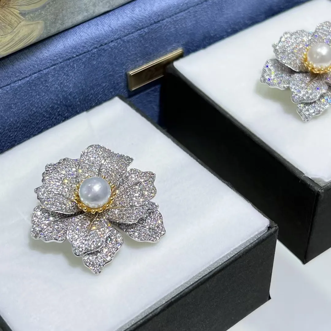 Japanese Korean Style Three-Dimensional Flower Brooch with Australian White Niche Seawater Pearl Chest Flower Fashion Accessory