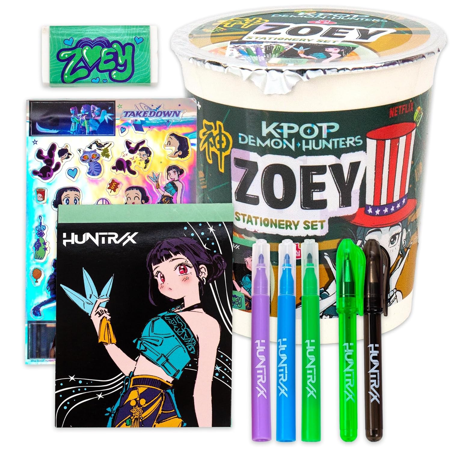 Kpop Demon Huntersâ„¢ Mira Stationery Set with Mini Notebook, Gel Pens, Markers, Eraser, Bonus Kpop Stickers & Cute Storage, Official K Pop Demon Hunters Merch for K-Pop Fans,…