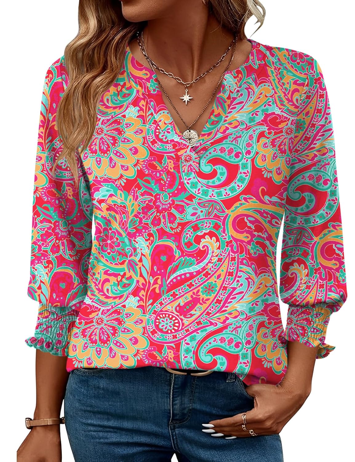 - 【Soft and Flexible】LOMON 3/4 smocked sleeve top is skin-friendly and comfortable for everyday wear.Lightweight, soft & high quality fabric (breathable but not see-through).