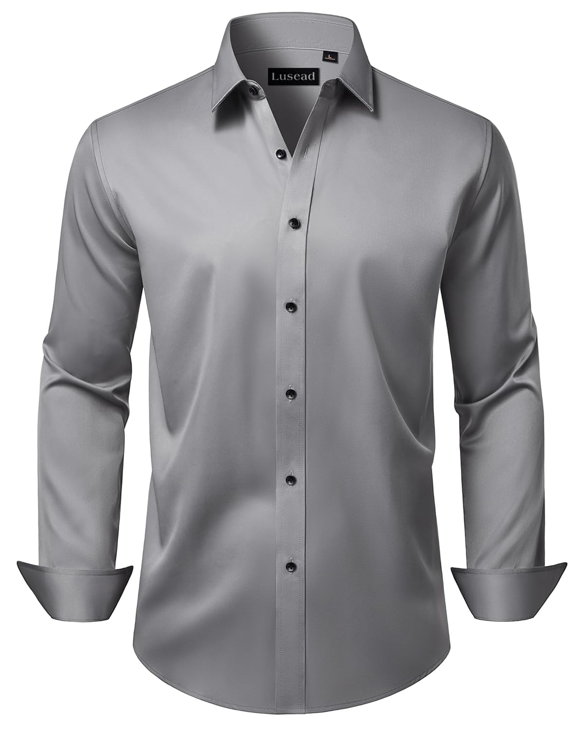 Men’s Dress Shirts Long Sleeve Stretch Wrinkle Free Wedding Formal Business Button Down Shirt