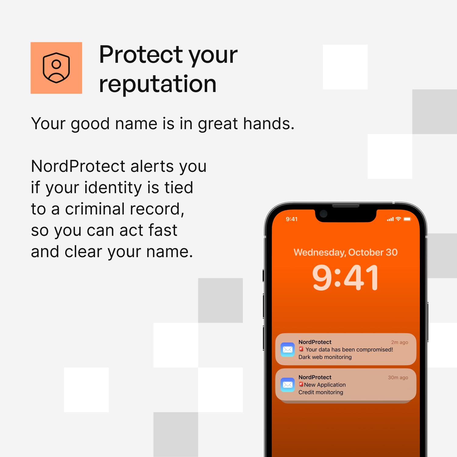 - Get immediate security alerts. NordProtect notifies you of any suspicious activity involving your personal details or credit file. Each alert comes with clear tips to help you take the right steps to prevent damage.