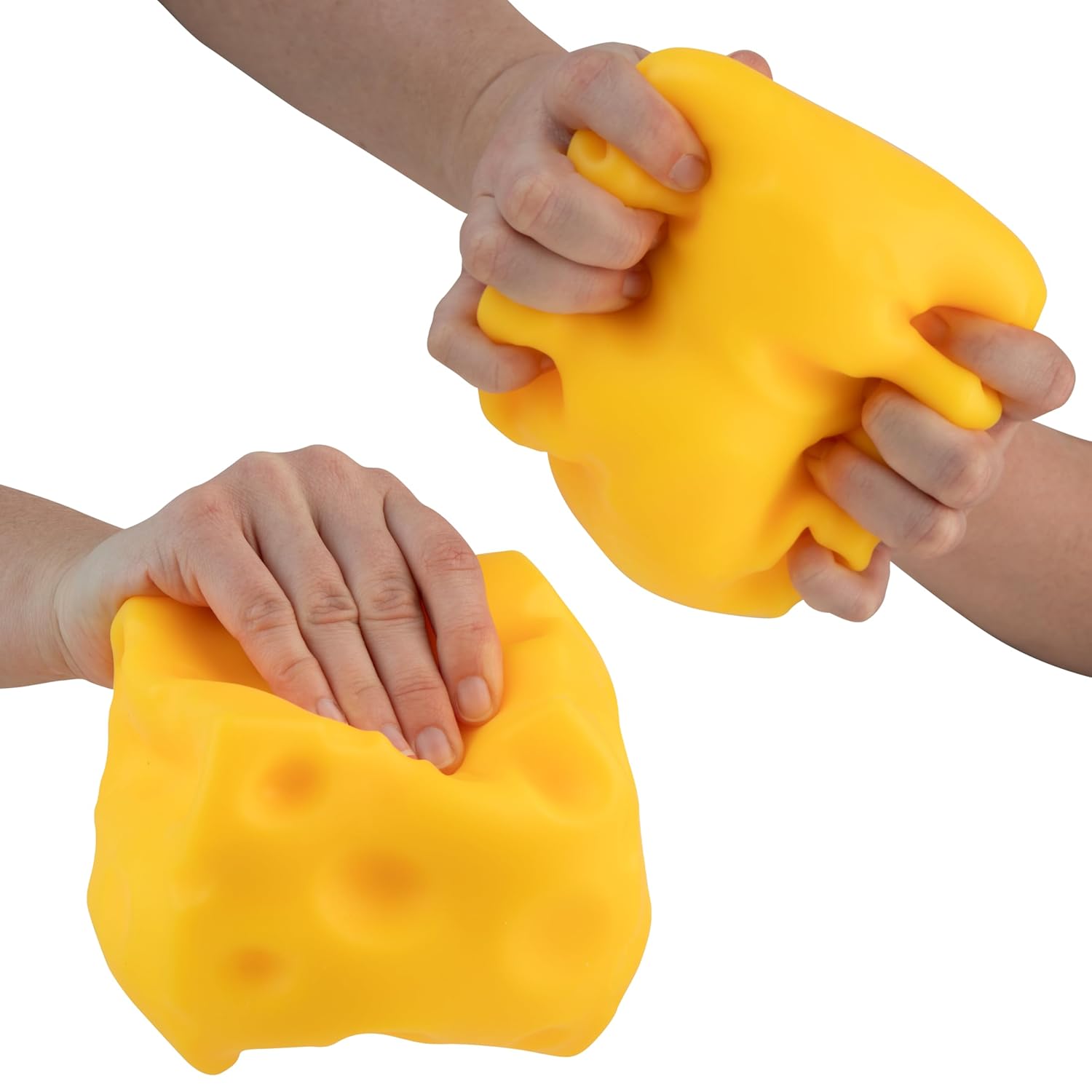 - Yellow colored. Made with a custom blended, extra-strength Thermoplastic Rubber (TPR) that makes it super soft and squishy. Highly durable and washable (just give a rinse with water when needed), this hunk of cheese is ready to provide long lasting fun and stress relief.