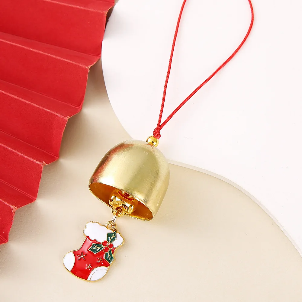 Popular Alloy Silver Plated Santa Wreath Small Bell Ornament Christmas Tree Wind Chime Pendant Holiday Party Gift