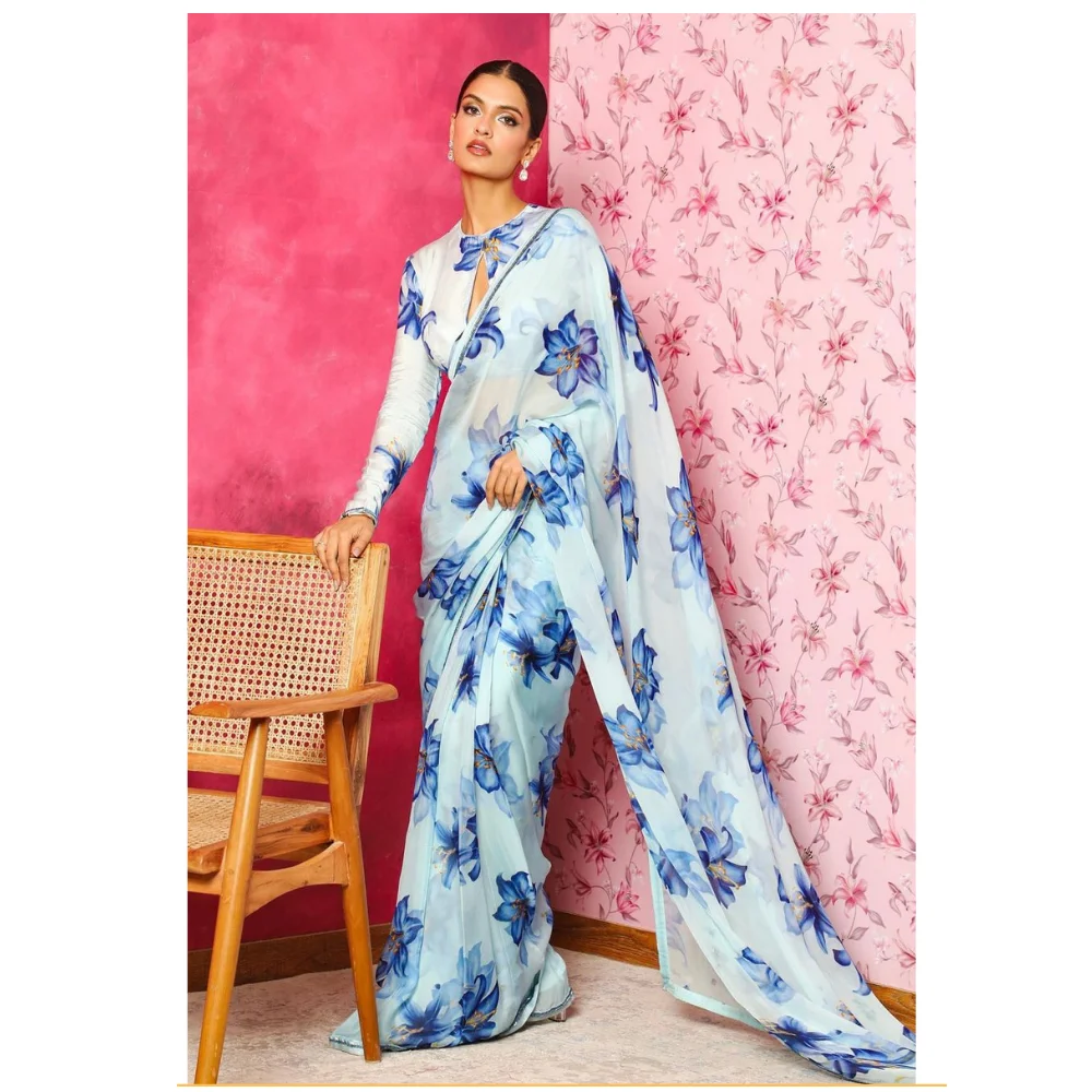 Premium Quality Daily Wear & Casual Outings Georgette Saree Indian & Pakistani Apparel & Accessories Printed Direct From India