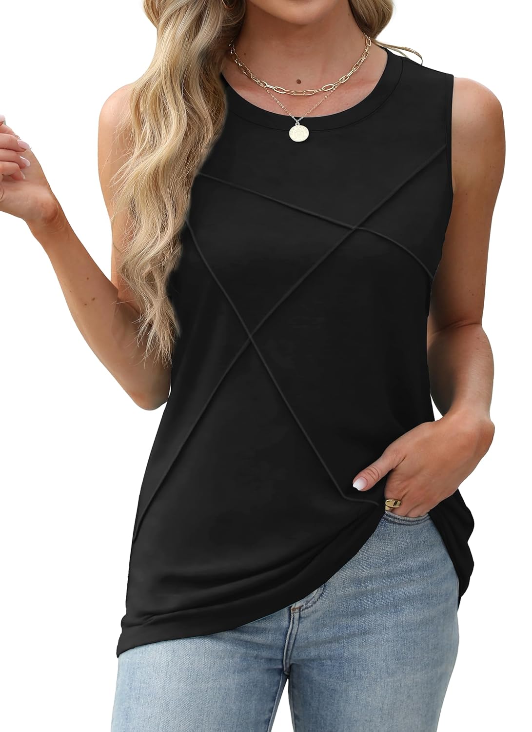 - Flexible Fashion: This sleeveless crew neck tank top is perfect for layering under jackets or cardigans or wearing alone, featuring a longer length that allows for versatile styling options.